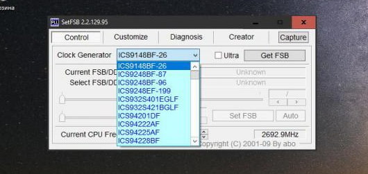 Для проведения ускорения компьютера достаточно просто скачать СетФСБ и запустить приложение на ПК. Установка не потребуется, потому что утилита портативная. Настройка программы проходит точно и корректно при известных данных о модели тактового генератора. Сведения об установленной модели можно получить на сайте производителя. Рекомендуется изучить Clock Generator, где в поле выбора важно PLL-значение. Оно должно соответствовать имеющейся модели.